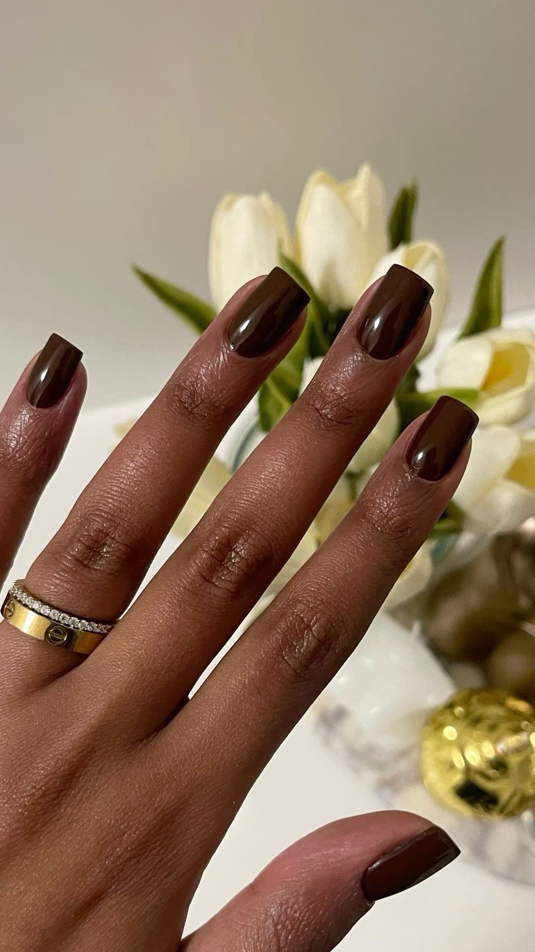 1. Glossy Chocolate Brown Nails