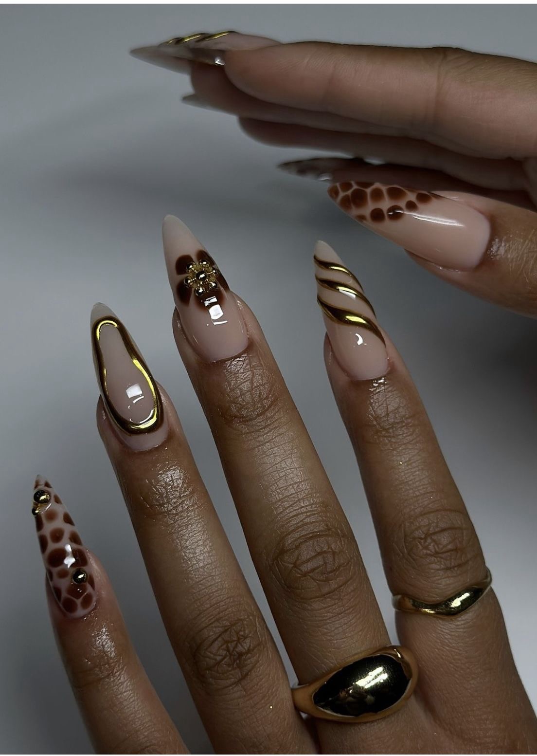 If you love artistic, unique designs, go for abstract swirl nails in warm nudes, deep browns, or metallic accents. This trend gives a luxury, hand-painted feel.