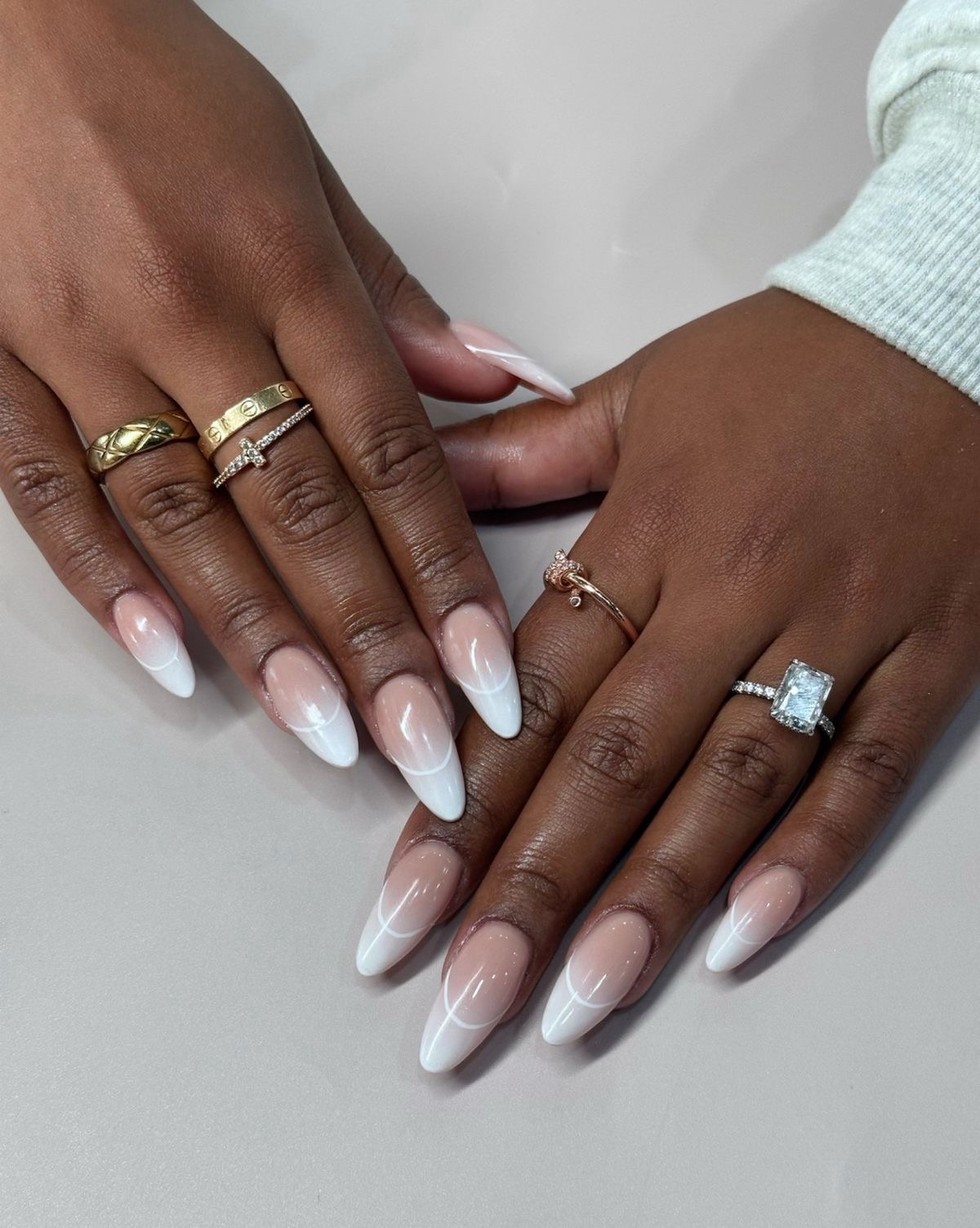 For a soft, feminine touch, nude ombré nails create a seamless blend of natural and elegant. This style works for any occasion—from corporate meetings to a night out.