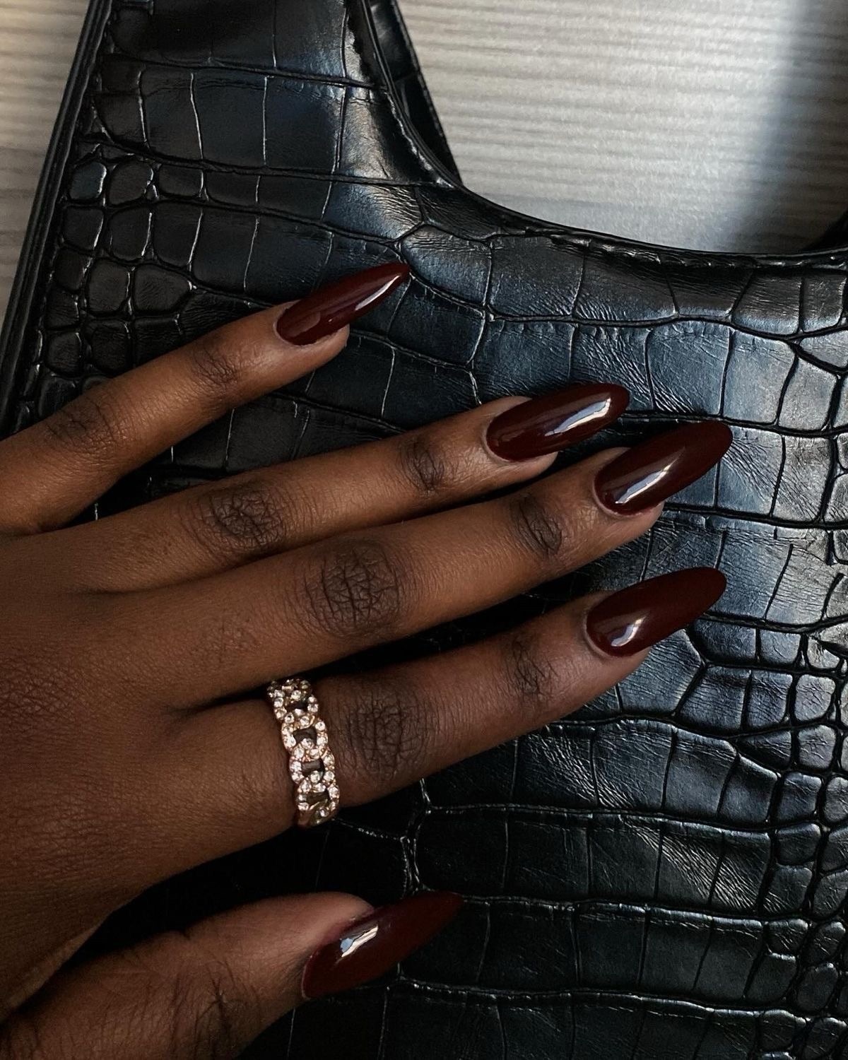 Burgundy screams richness, and when paired with a matte finish and a sharp stiletto shape, it’s the ultimate boss-girl nail look.