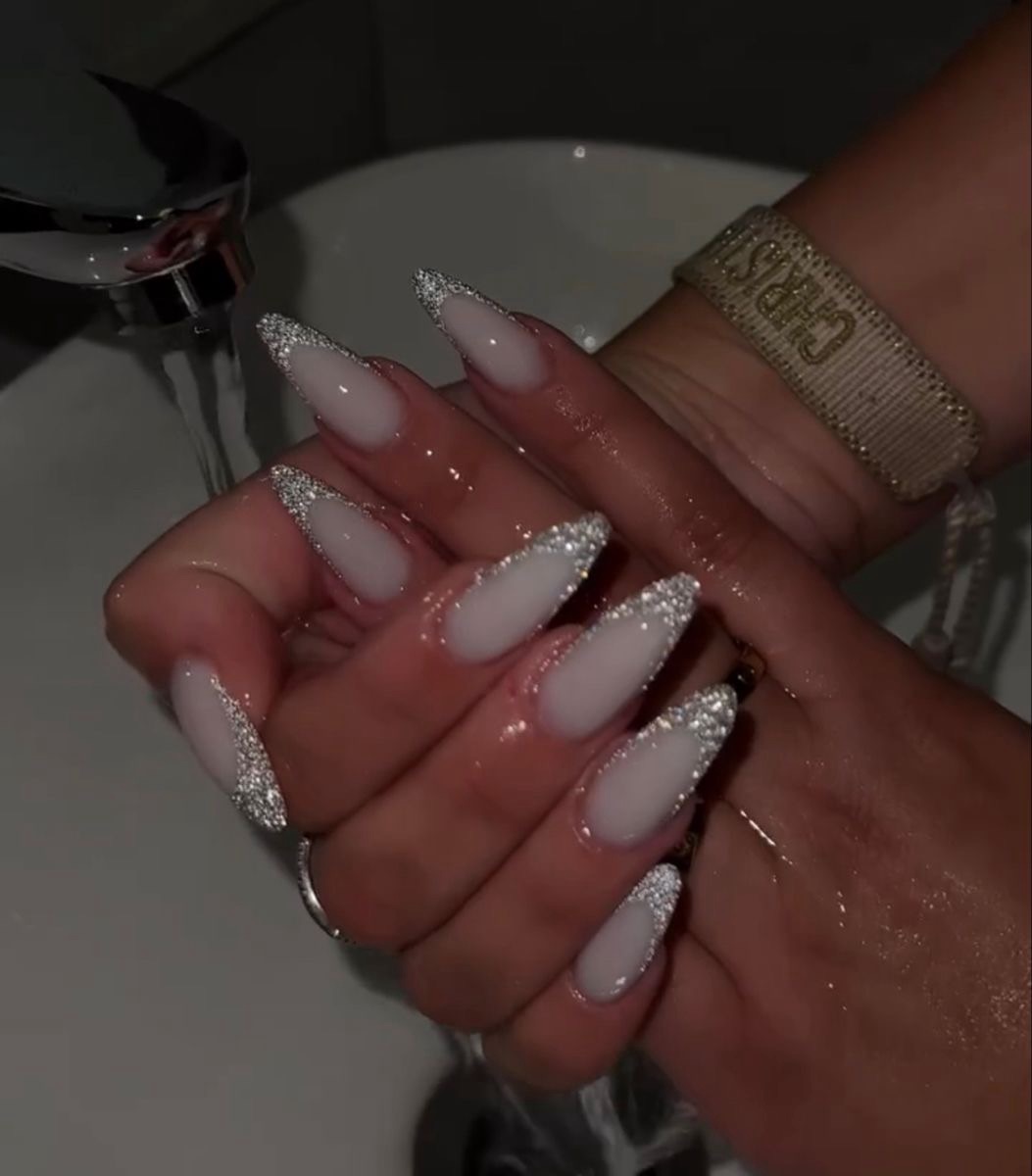 Nothing says luxury like milky white nails with delicate rhinestones. Whether it’s a subtle sparkle on one nail or fully embellished tips, this look is pure class.