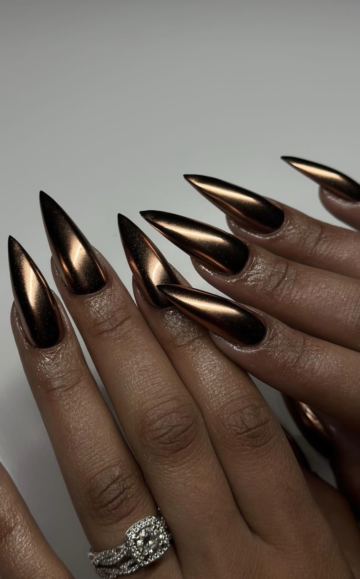 Velvet chrome nails give a shimmering, 3D effect that looks luxurious and futuristic. Perfect for those who love a soft-glam meets high-fashion aesthetic.